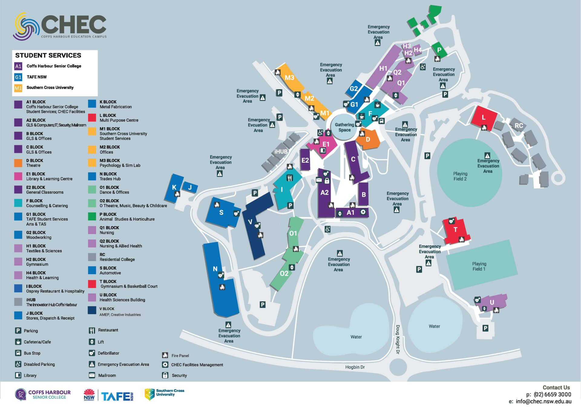 Coffs Harbour Education Campus Map Coffs Harbour Education Campus is situated at 363 Hogbin Drive, Coffs Harbour, 2450. The room numbering format is Block, Floor, Room Number. For Example, A.G.7 would be A Block, Ground Floor, Room 7. CHEC mapDownload